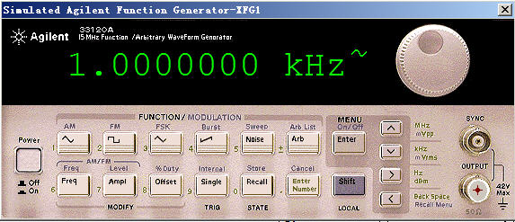 (3)在输入端接入虚拟安捷伦信号发生器(位于仪表工具栏),可方便准确得提供交流信号源,在仪器版面上可自由设置幅值和频率。如图所示。