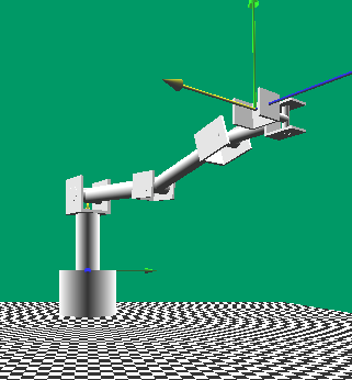 图中建立的虚拟机械臂是具有两个转动副和一个移动副,假设