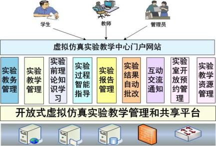 开放式虚拟仿真实验教学的管理和共享平台是基于J2EE架构的B/S结构系统的解决方案,系统用户角色包括学生、教师、教务员、实验室管理员、校领导、系统管理员等角色。系统依托校园网络,以虚拟实验技术和网络信息技术增强实验实践教学。