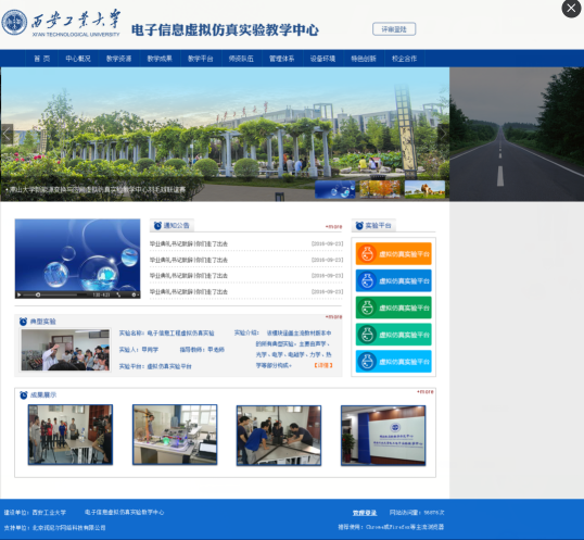 虚拟实验中心门户网站采用具有网上多媒体信息综合展示功能的动态网站内容管理系统。满足虚拟实验中心从中心介绍、实验教学、实验开放、实践创新到管理体制、师资队伍、设备环境、网络资源等栏目信息的起草、审核与发布工作。用户可通过系统的栏目管理、内容管理、资源管理模块自行建立与中心宣传业务相适应的多级栏目,支持多媒体信息在线编辑发布,可实现实验中心与下设实验室门户网站统一管理。