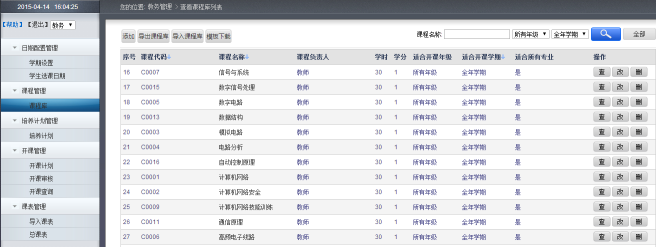 针对全校学生制定每个学期需要开设的课程,发布选课日期,并审核以及发布最终开课信息 |