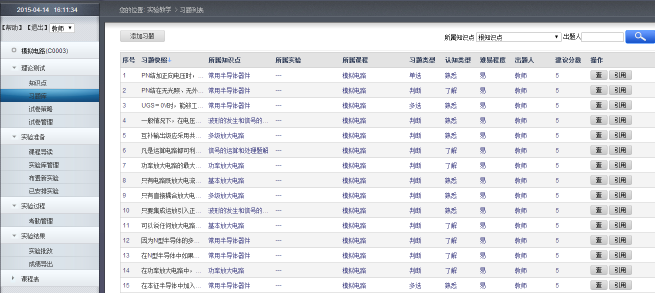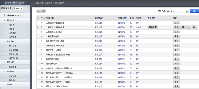 维护各门课程实物实验和虚拟实验的典型实验,提供增、删、查、改操作。 |