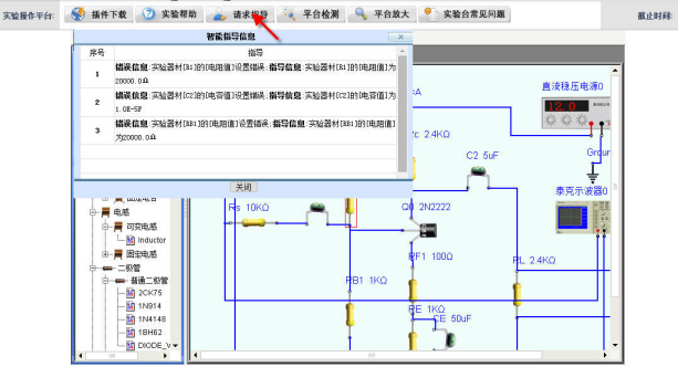 实验过程智能指导:学生在实验过程中遇到问题可以请求指导,系统给出指导信息。
