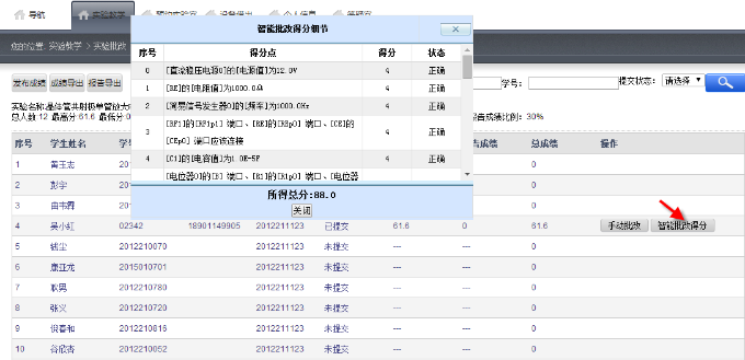 实验结果自动批改:学生提交实验结果后系统自动评判,给出分数和评分点。